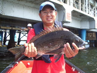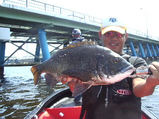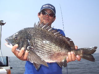 ハッピイー須永さん47cmGet!で大喜び チヌハンターの松本君、結局2日間で9本Getしました。 |