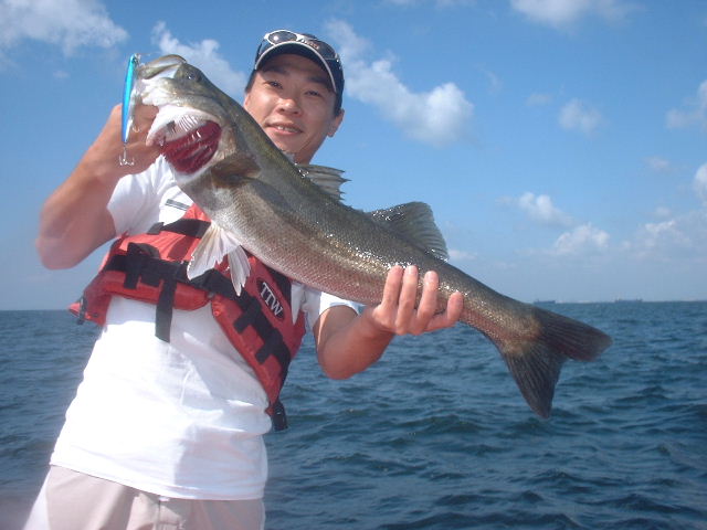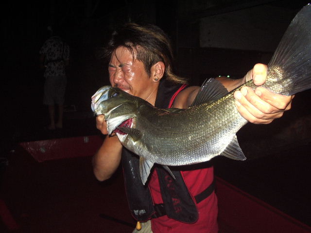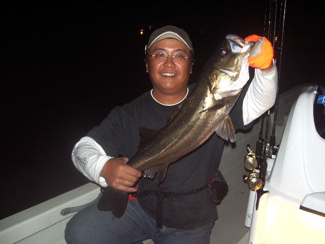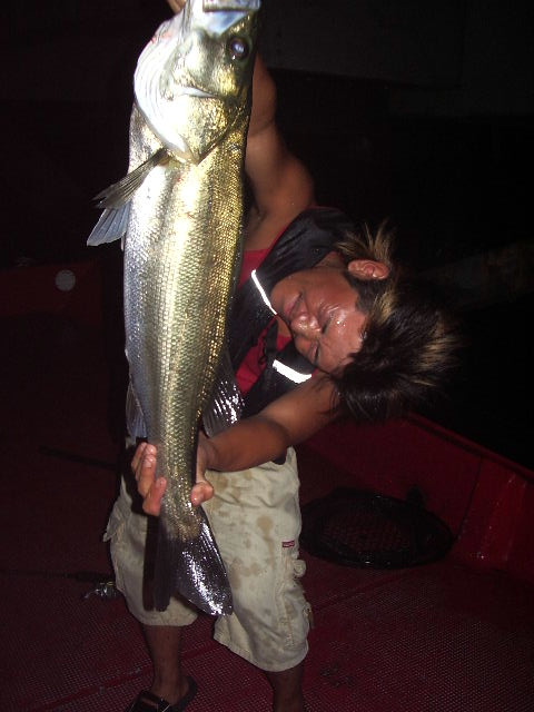 | 8/18 宮後様 50upのクロちゃん&84cmのシーバス君Getで、今朝は一人でサイコー でしたね。 |