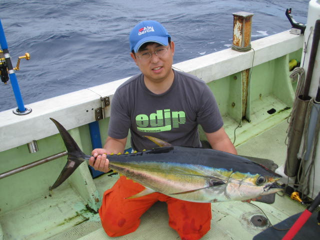 会員NO 023 仲野和久さんです。久米島からの釣行でメールをいただきました。 12Kのキハダマグロはお疲れ様でした! お仲間も60K級をGetしたそうです。 |